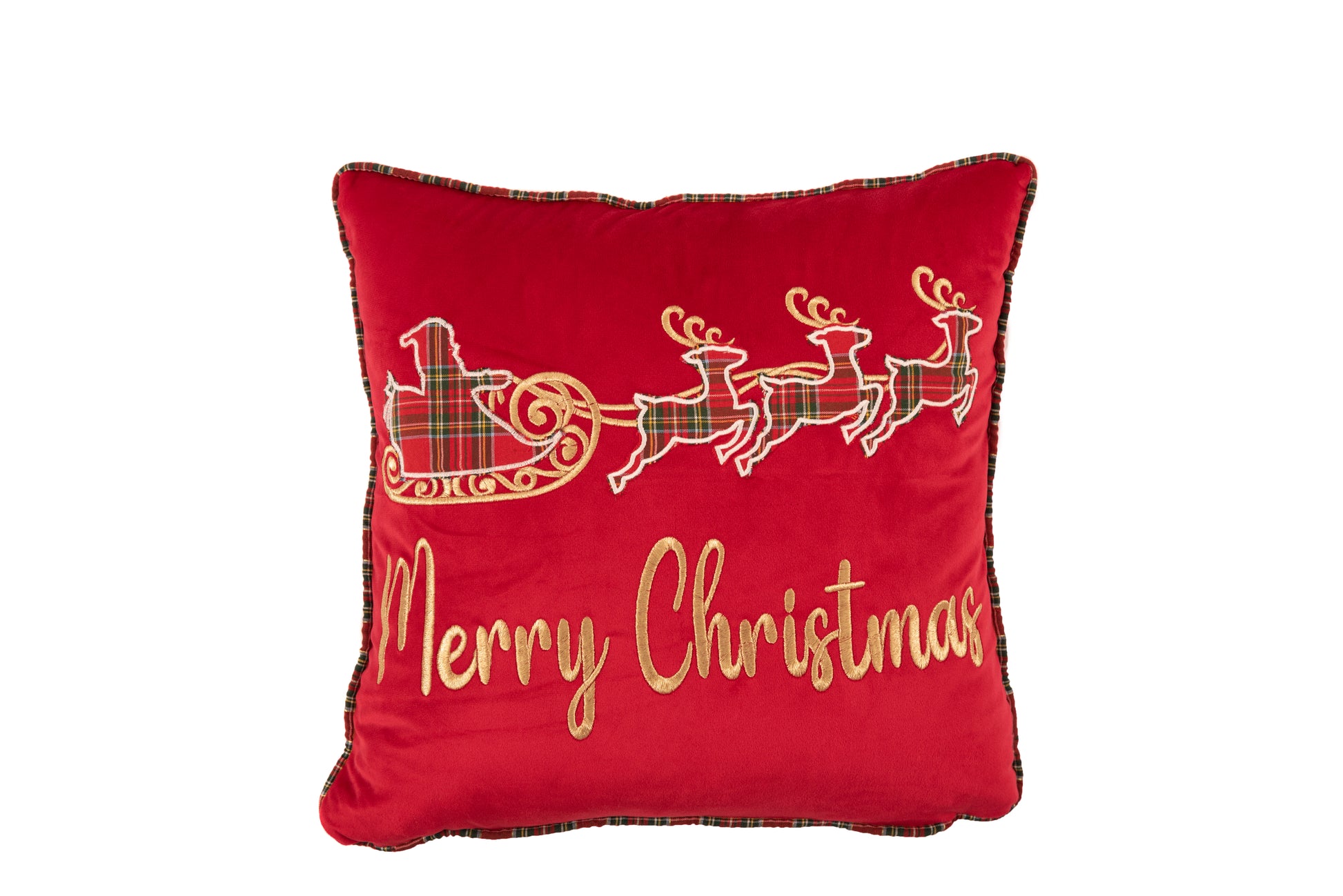 colore rosso con inserti in tartan, ricamo oro